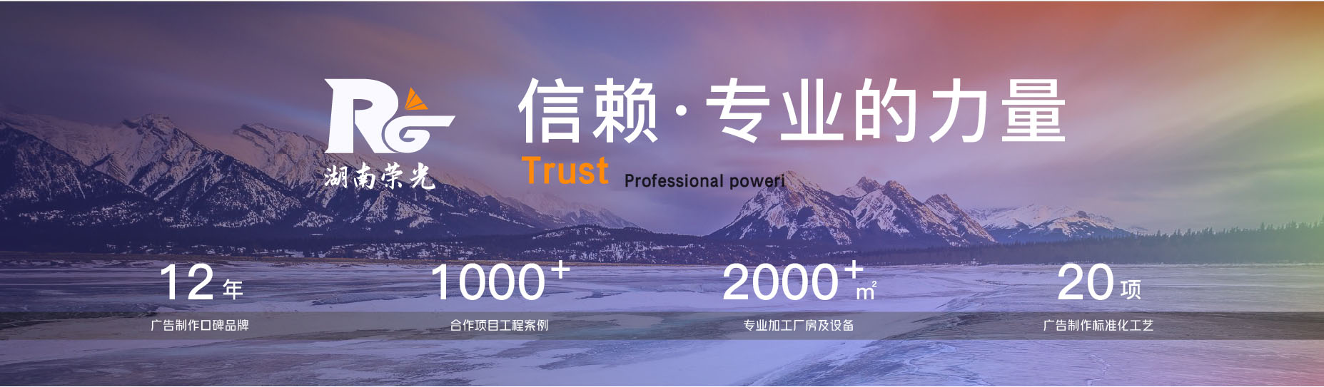 走進湖南榮光About Us湖南榮光公司是一家總部位于長沙的廣告公司,公司現有管理團隊技術骨干20余人,擁有專業(yè)的安裝隊伍及售前售后團隊、資深的文化墻設計、黨建文化設計和廣告標識設計團隊。現有廣告標識及發(fā)光字加工生產廠房2200平米,150平米標準化烤漆加工房。全自動發(fā)光字折彎機、雕刻機、激光切割機、平板UV設備等十余臺。同時具有強大的LED顯示屏供應鏈、為您企業(yè)的廣告投入,實現創(chuàng)新和快速反應,提供了有力保障。